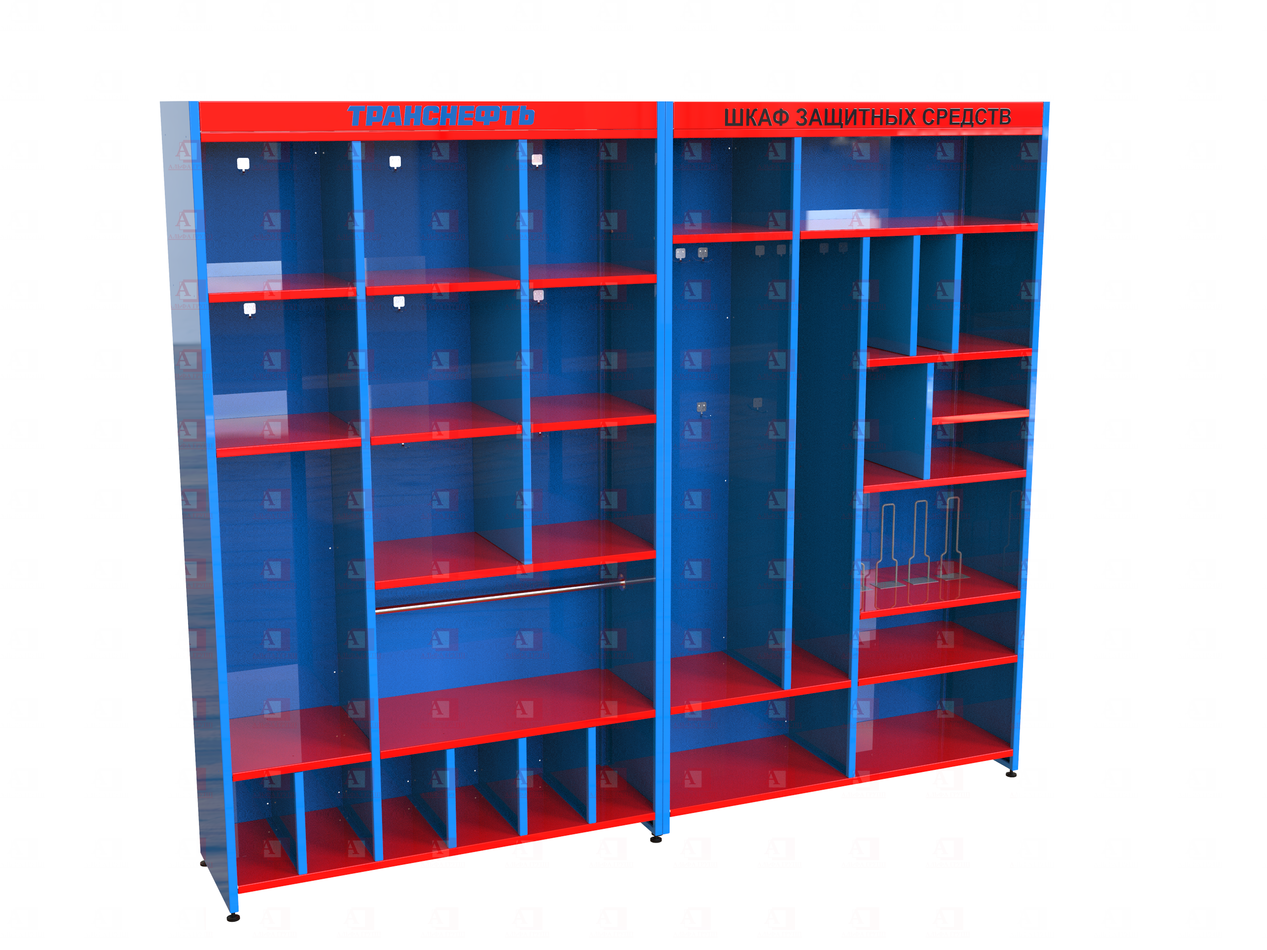 • Шкаф СИЗ "Альфа-11" (расцветка "ТРАНСНЕФТЬ, цвет: синий, красный") из стали с полимерным покрытием для энергоустановок.